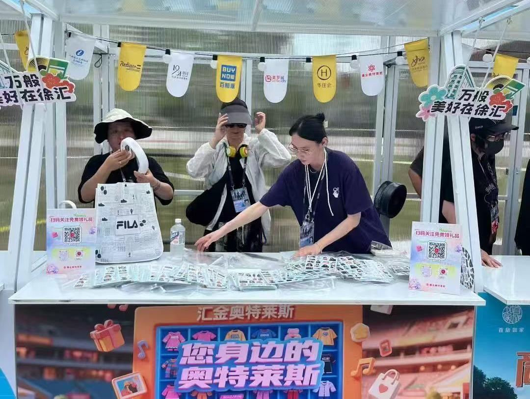 8月20日,南站店在时代少年团演唱会召开之际,于上海体育馆外场开展线下推广活动。工作人员以官微、小红书等新媒体平台为媒介,为现场观众推介商场重点品牌及促销活动,同时,为扫码关注者免费提供贴纸、扇子等精美周边,受到现场众多参与者的积极互动。