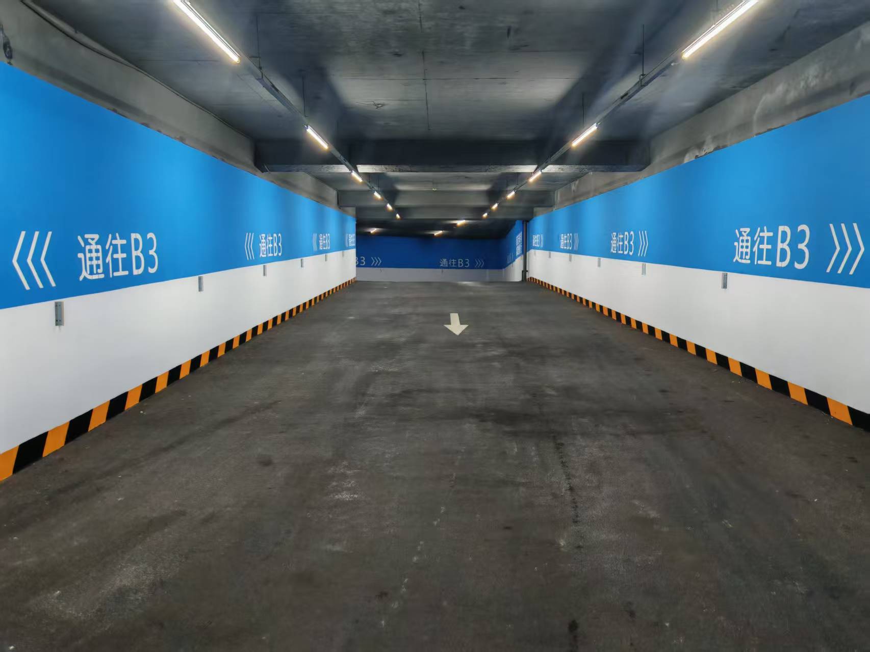 环境提升上,以“改旧焕新”为方向,着重强化硬件配置,一方面,对环氧地坪实施全面翻新,以提升车辆行驶的舒适度与稳定性,另一方面,选用色彩饱和度较高的墙面涂料进行重新粉刷,让原本略显昏暗的车库空间变得更为明亮宽敞。为解决B3层部分墙面渗水,粉刷效果不佳问题,此次改造改用景观绿植方式,既解决了墙面渗水脱皮问题,也为空间增添生机与活力。